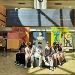 W dniu wczorajszym odwiedziła nasze muzeum klasa 2A z LXVIII Liceum im.Tytusa Chałubińskiego w Warszawie. Naszym gościom zaprezentowaliśmy nową wystawę stałą, gdzie zebraliśmy niedawno eksponaty ze świata anatomii, a także pokazaliśmy muzealną produkcję filmową pt. „Kamienie milowe w dziejach anatomii”. Mieliśmy okazję także porozmawiać o dokonaniach naukowych Galena, Wesaliusza, a także o wpływie na medycynę Leonarda da Vinci. Widownia naszego teatru anatomicznego okazała się doskonałym miejscem do prowadzenia tego rodzaju pierwszych dysput z młodzieżą, która zasili pewnie niedługo progi naszej uczelni. W dalszej części wizyty zwiedzaliśmy także wystawę czasową pt. ” Od dżumy do COVID-19″ i porozmawialiśmy z uczniami o słynnych chorobach z perspektywy kilku wieków. Ukoronowaniem wizyty było zdjęcie grupowe pod patronem Liceum.